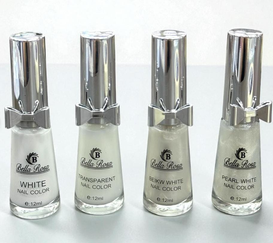 4 esmaltes tradicionais nas cores: Branco, Renda, Perolado e Perolado Cristal